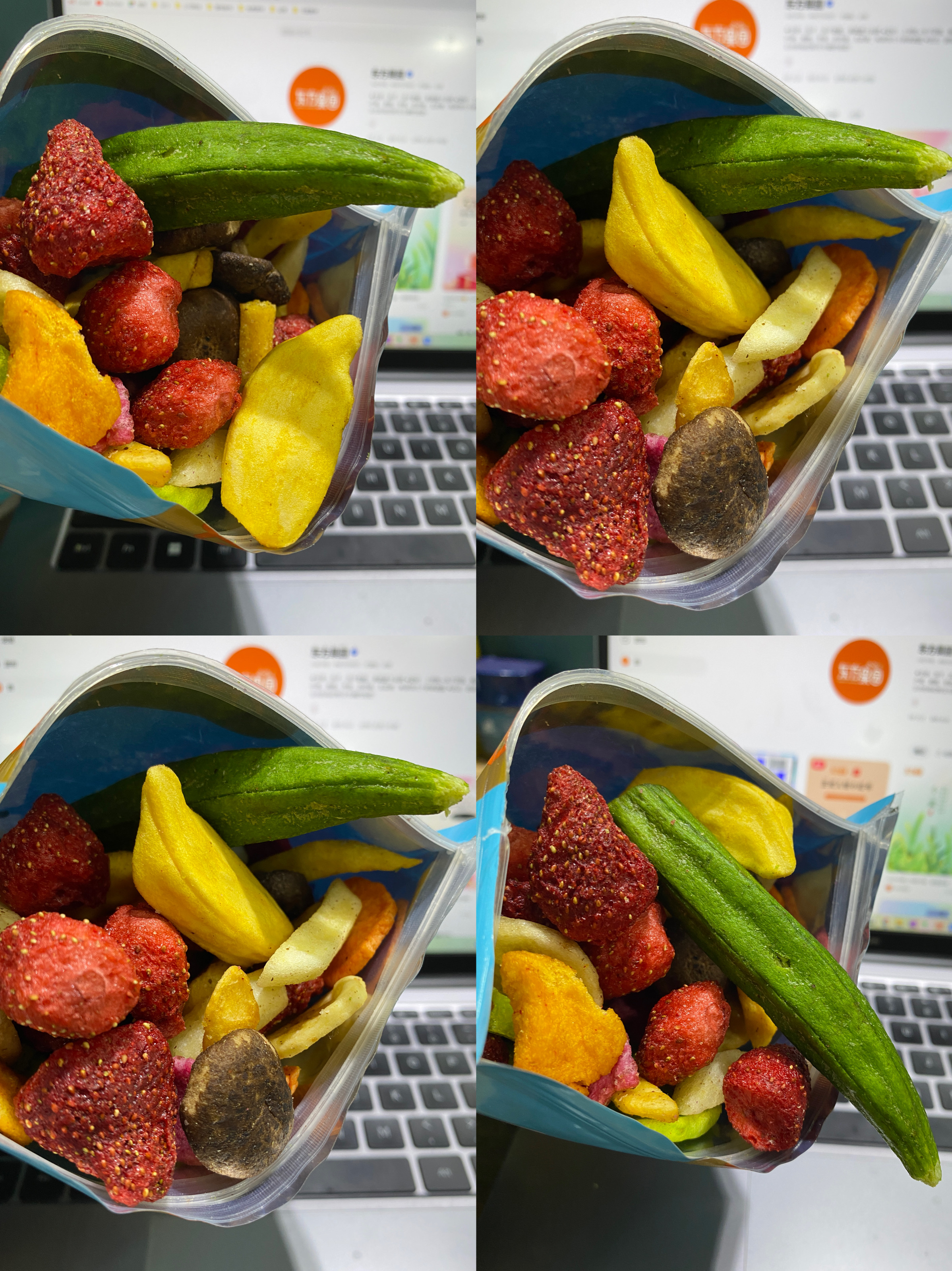 果蔬脆片里含有果蔬本身的蛋白質(zhì)、植物纖維、微量元素等,果蔬脆片口感酥脆、風(fēng)味各異、有益健康,老少皆宜,保存了新鮮果蔬天然的色澤、營養(yǎng)和風(fēng)味、又具有低脂肪、低熱量和高纖維素的特點,含油率明顯低于傳統(tǒng)油炸食品,無油膩感,不會產(chǎn)生3-4苯并笓和丙烯酰胺等致癌物,保存期長,加工范圍廣泛。
