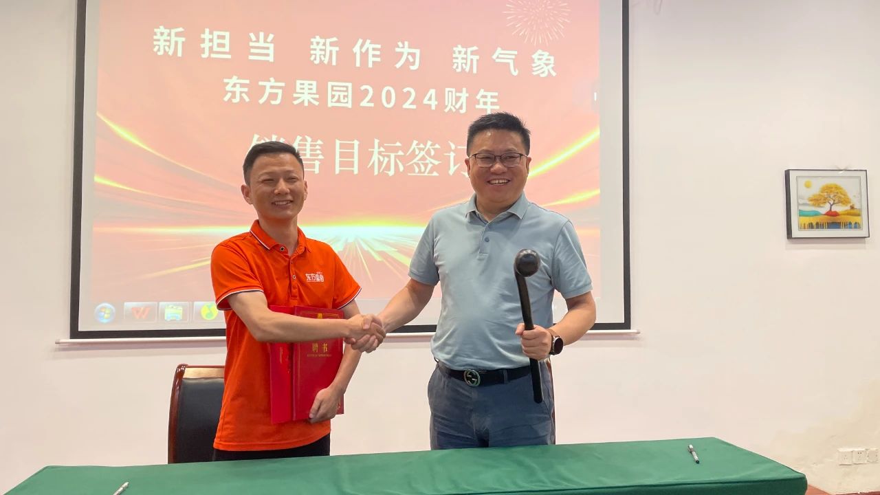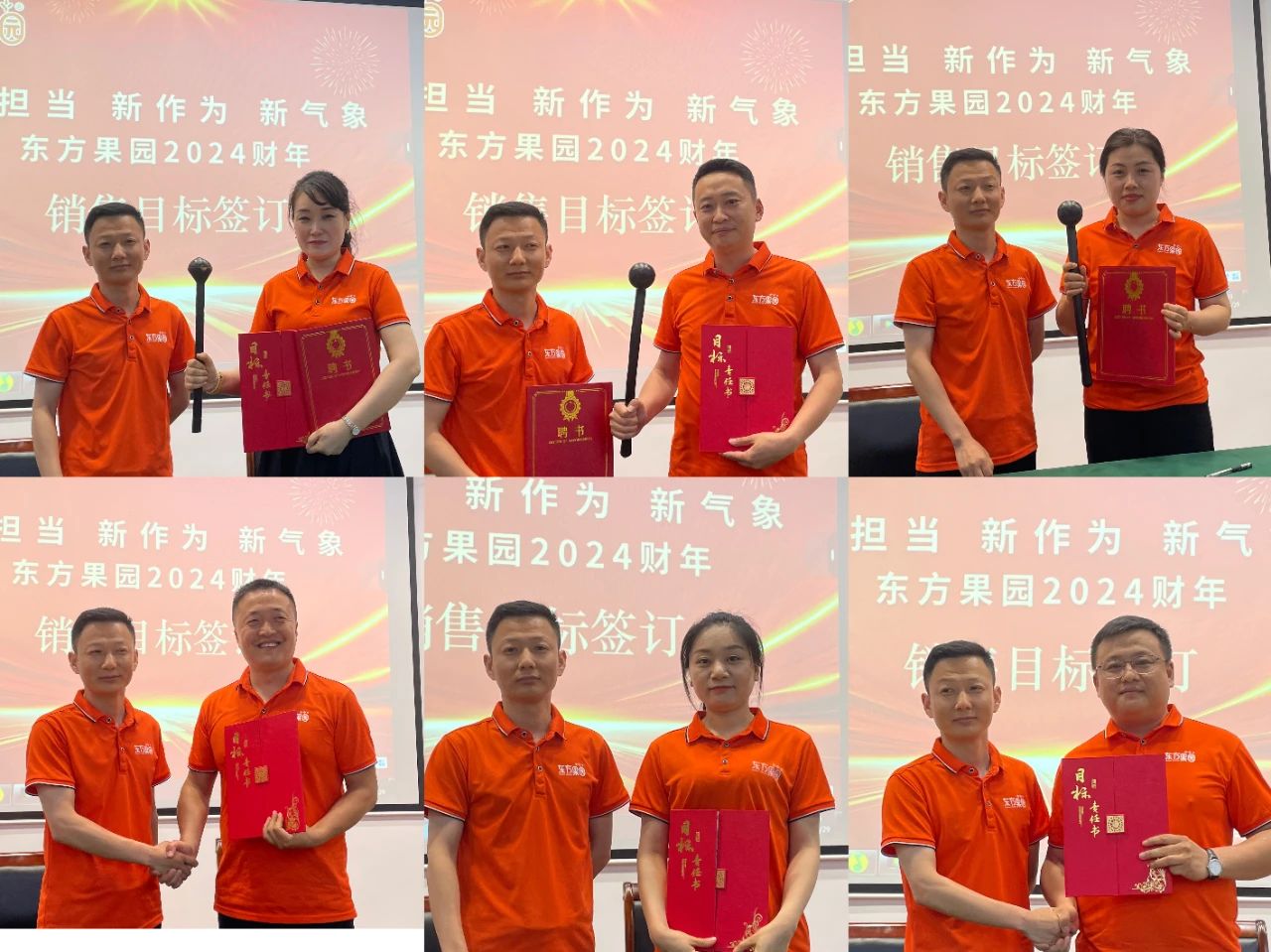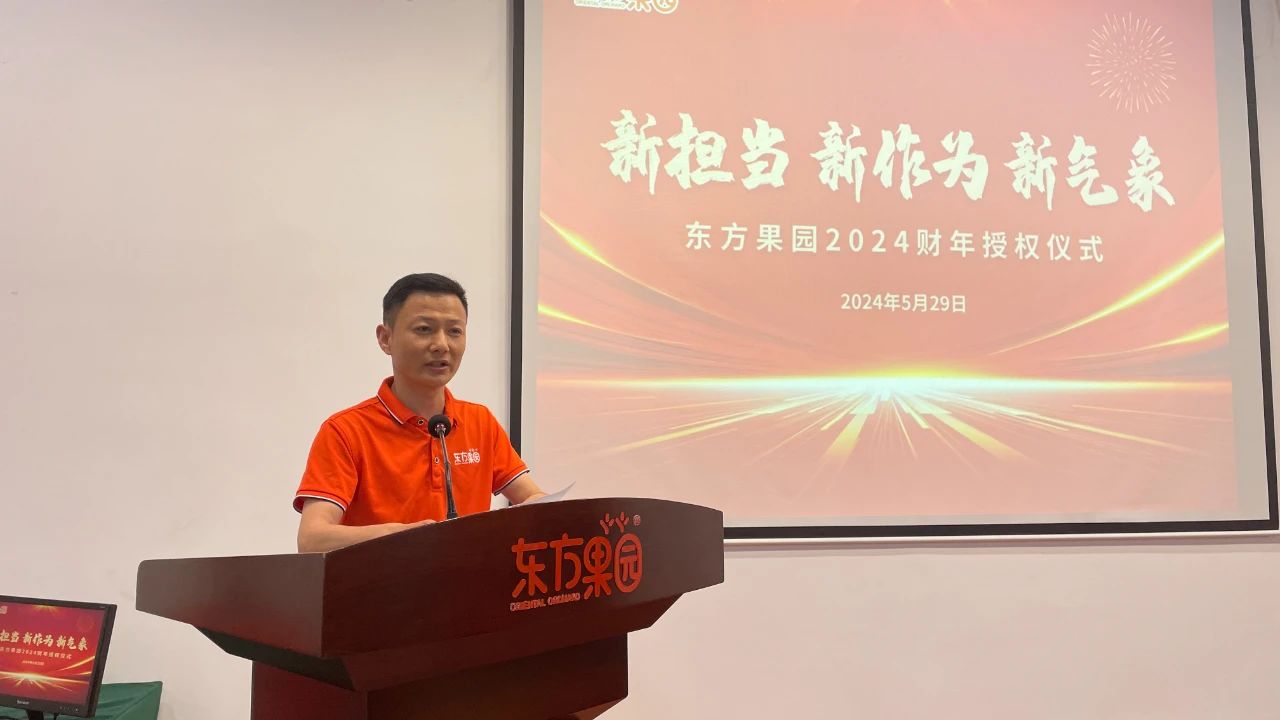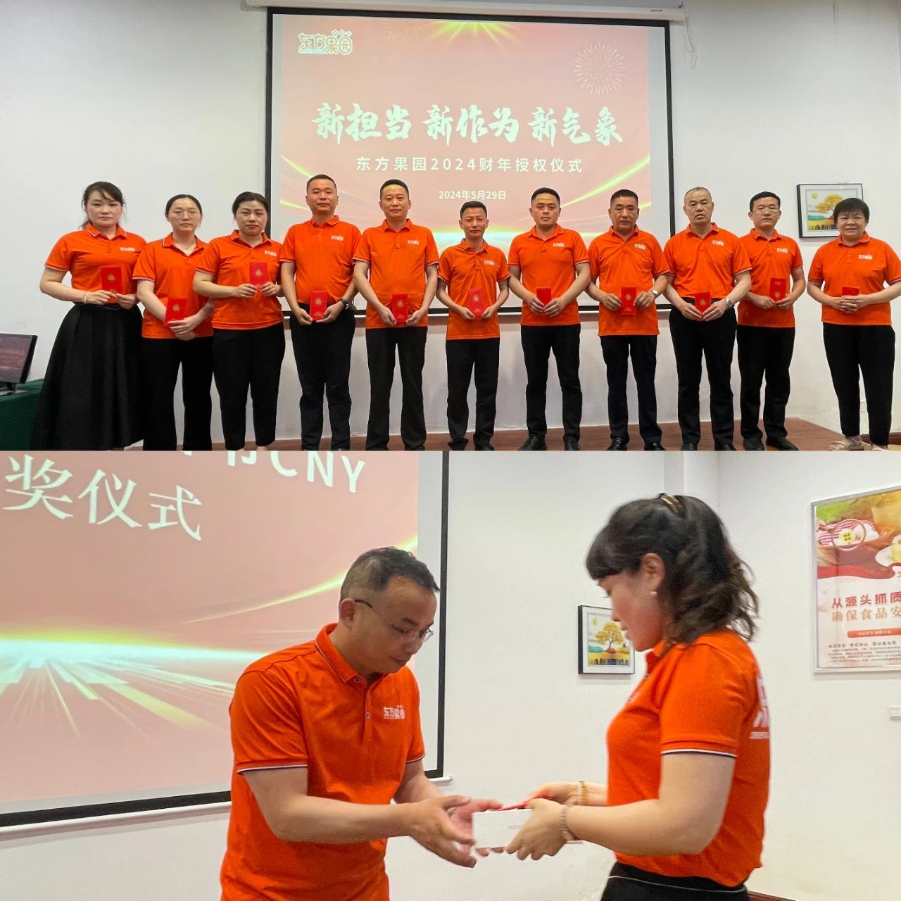5月29日下午,以“新?lián)?新作為 新氣象”為主題的東方果園集團2023財年表彰會議暨2024財年授權(quán)儀式,在東方果園研學基地食安培訓室舉行。