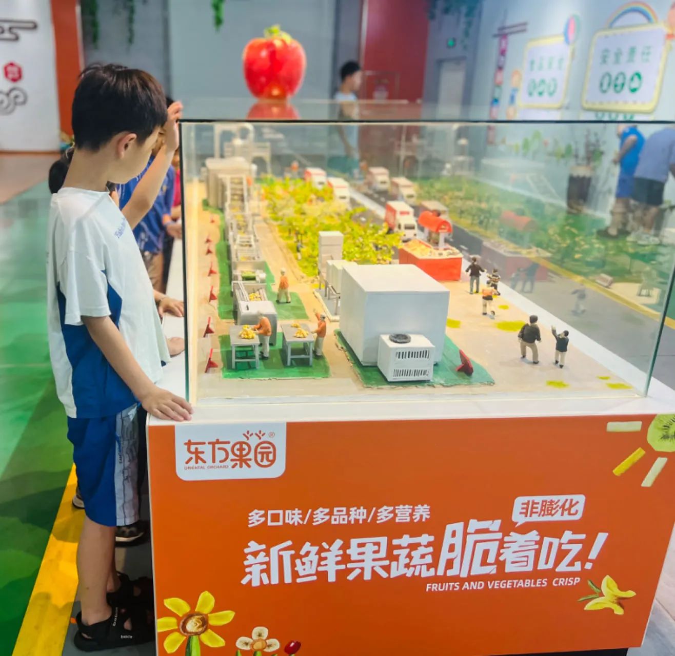 走進(jìn)東方果園食品安全研學(xué)基地展廳,孩子們歡呼雀躍,喜悅之情溢于言表,眼神中更是充滿了好奇和對(duì)未知世界探究的欲望??吹叫菹^(qū)準(zhǔn)備的豐富的果蔬脆干零食時(shí),小朋友們爭(zhēng)先恐后的去品嘗,果蔬脆清香酥脆的口感,每一口都在嘎嘣脆的聲響中回蕩,給孩子們的味蕾帶來了極大的滿足。