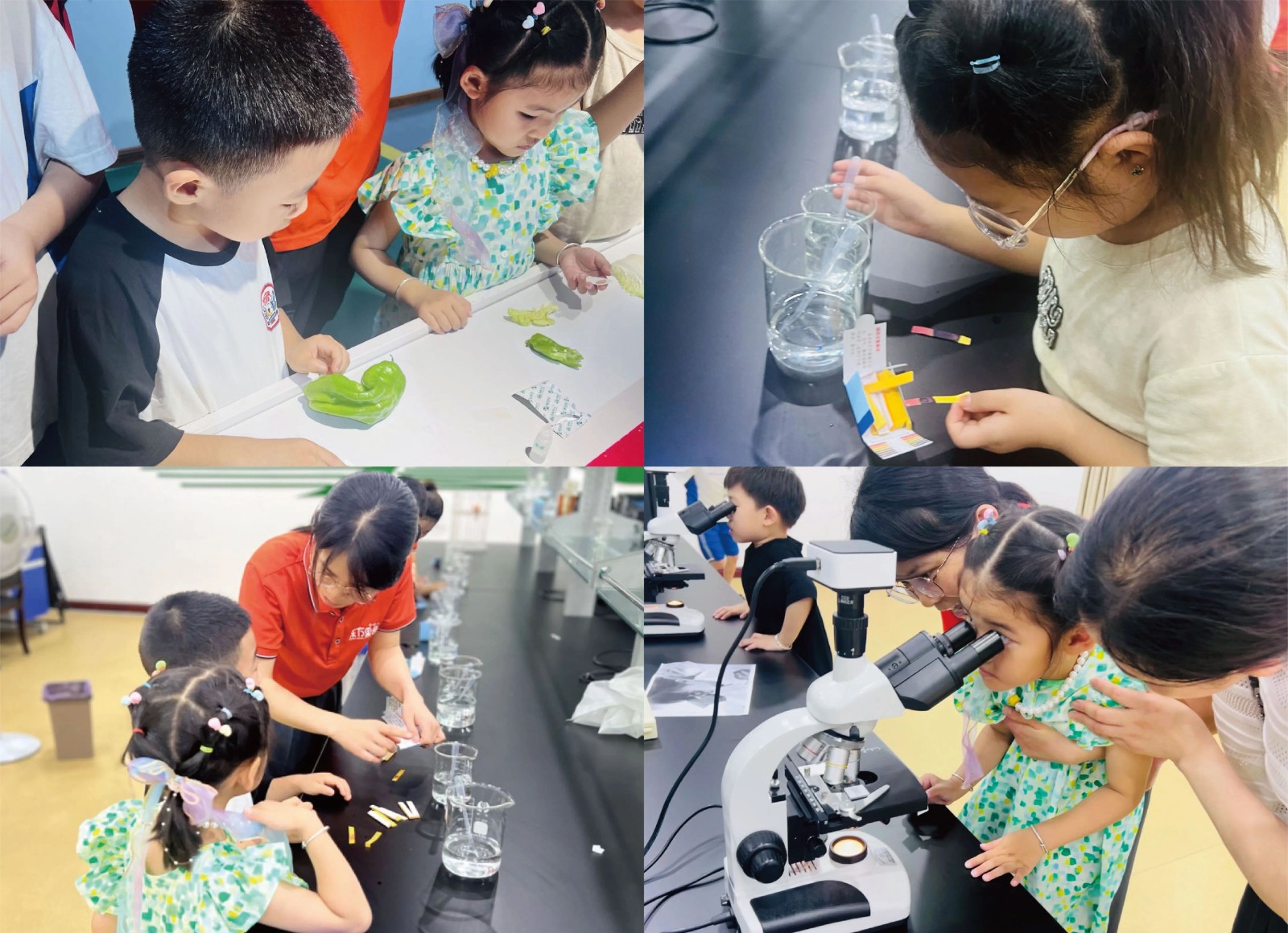 在二樓快檢中心,孩子們看著顯微鏡里微觀世界,興奮地分享著自己的發(fā)現(xiàn),他們驚嘆于細(xì)胞內(nèi)部復(fù)雜的結(jié)構(gòu)和色彩。在酸堿度顯色的奇妙小實(shí)驗(yàn)中,他們親手操作,認(rèn)真觀察試紙?jiān)诓煌芤褐谐尸F(xiàn)出了不同的色彩變化,這些美麗的色彩不僅讓孩子們感嘆大自然的神奇也激發(fā)了他們的好奇心。雖然科學(xué)的奧秘對(duì)于他們來說還非常陌生,但這種親身實(shí)踐的體驗(yàn)無疑在他們幼小的心靈中播下了科學(xué)的種子,激發(fā)了他們對(duì)未知世界的探索。
