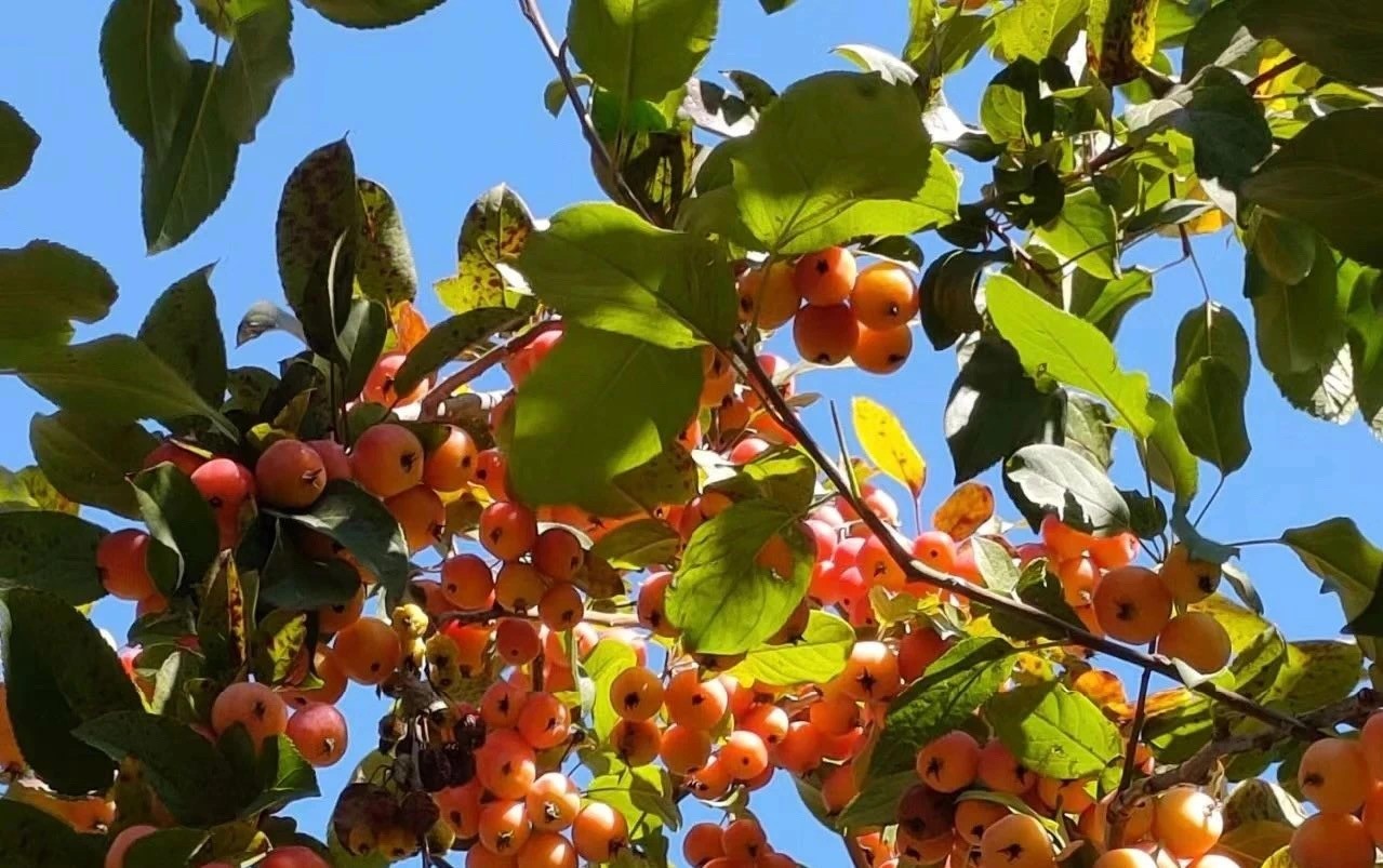 紅瑪瑙般的山楂掛滿了枝頭,一串串、一簇簇,十分惹眼。還有石榴,柿子,紅棗......美不勝收,到處都是欣欣向榮的收獲景象。