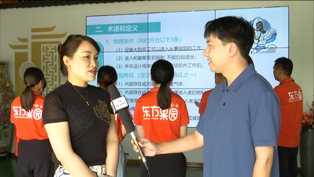 在面對安徽廣播電視臺的采訪時(shí),企業(yè)輪值總崔文艷表示:“我們安徽東方果園生物科技有限公司在2018年通過了三級安全生產(chǎn)標(biāo)準(zhǔn)化管理體系,全面落實(shí)抓基礎(chǔ)、抓基層、抓生產(chǎn)一線,強(qiáng)化班組規(guī)范化建設(shè),將月度安全績效、生產(chǎn)風(fēng)險(xiǎn)管控融為一體,形成東方果園特色的管理模式,做到“人人講安全、個(gè)個(gè)會應(yīng)急””。