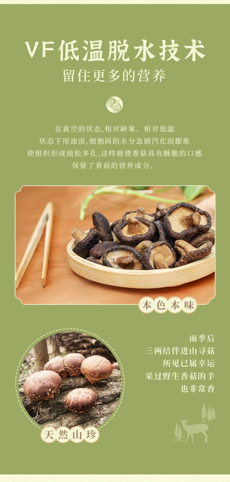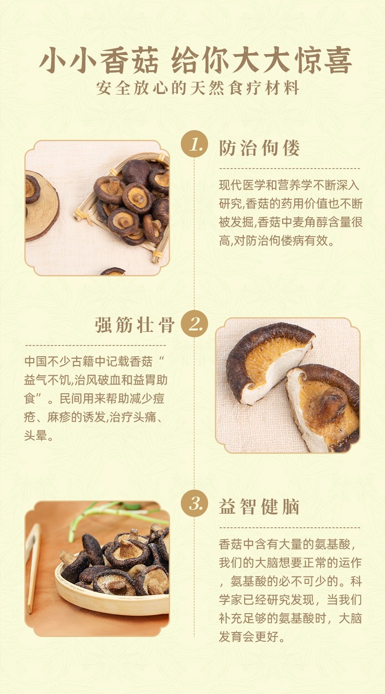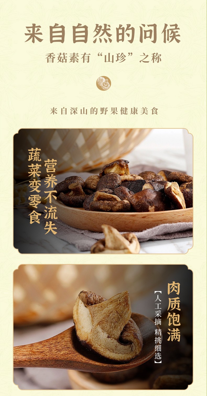 嚴(yán)格的選菇標(biāo)準(zhǔn)挑剔才有好香菇,選取整顆脆化