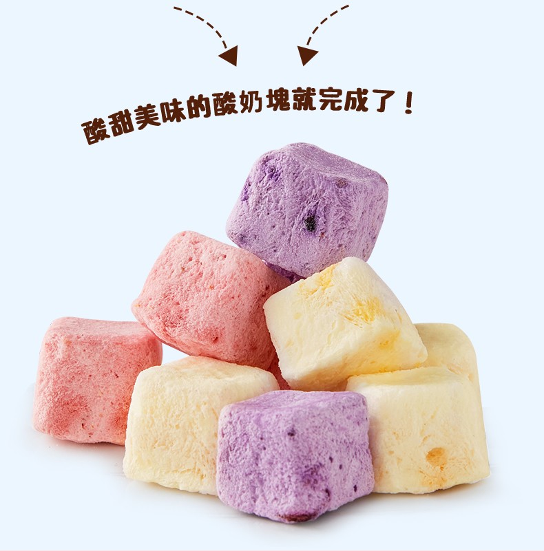 凍干酸奶塊,搭配牛奶更加美味。甄送好原料,采用風(fēng)味發(fā)酵乳,口感順滑,香醇濮郁。凍干黑科技,F(xiàn)D真空冷演干燥技布鎮(zhèn)住美味 -酸甜草莓味肆意彌漫!