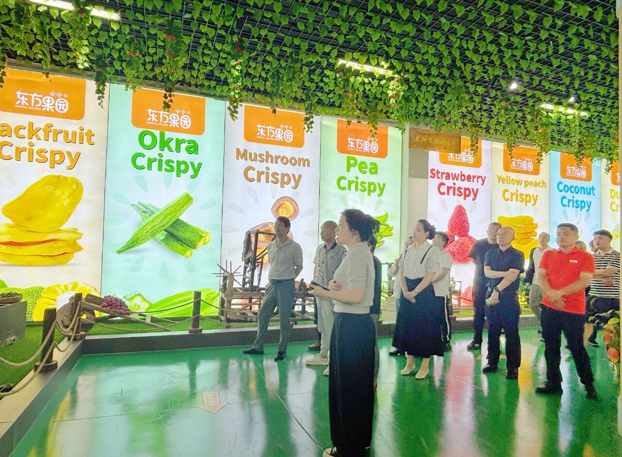 市場(chǎng)監(jiān)督管理局領(lǐng)導(dǎo)及志愿者們首先參觀了公司食品安全研學(xué)基地。這里不僅是知識(shí)傳播的平臺(tái),更體現(xiàn)了東方果園對(duì)食品安全教育的持續(xù)投入。通過生動(dòng)的展示與專業(yè)講解,大家對(duì)公司食品安全科普工作及果蔬脆生產(chǎn)工藝給予了認(rèn)可。在食安基地,志愿者現(xiàn)場(chǎng)品嘗了多款果蔬脆產(chǎn)品,并從專業(yè)角度提出了寶貴建議。